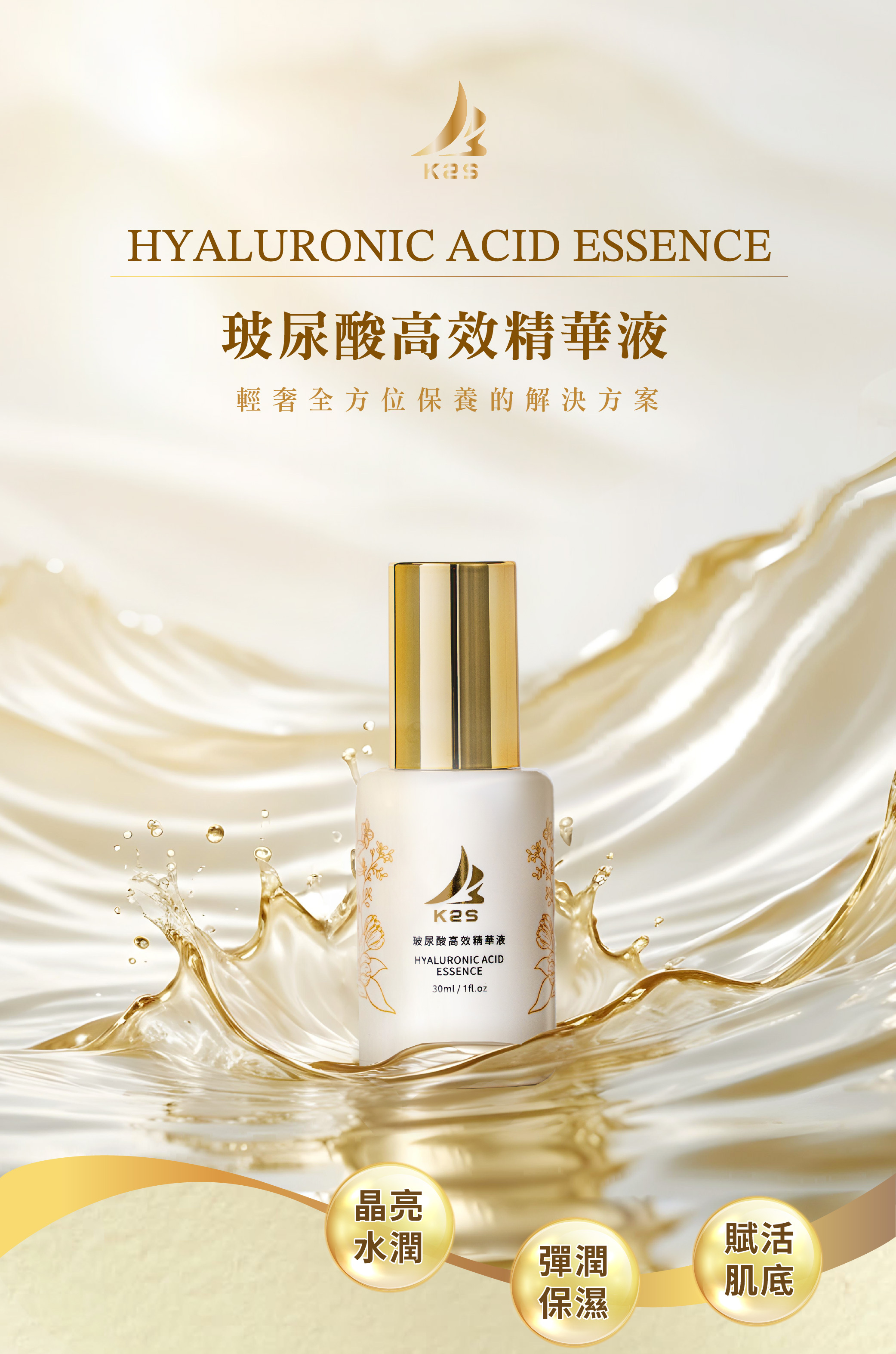 K2S玻尿酸高效精華液, 採用媲美醫美等級玻尿酸萃取液,
