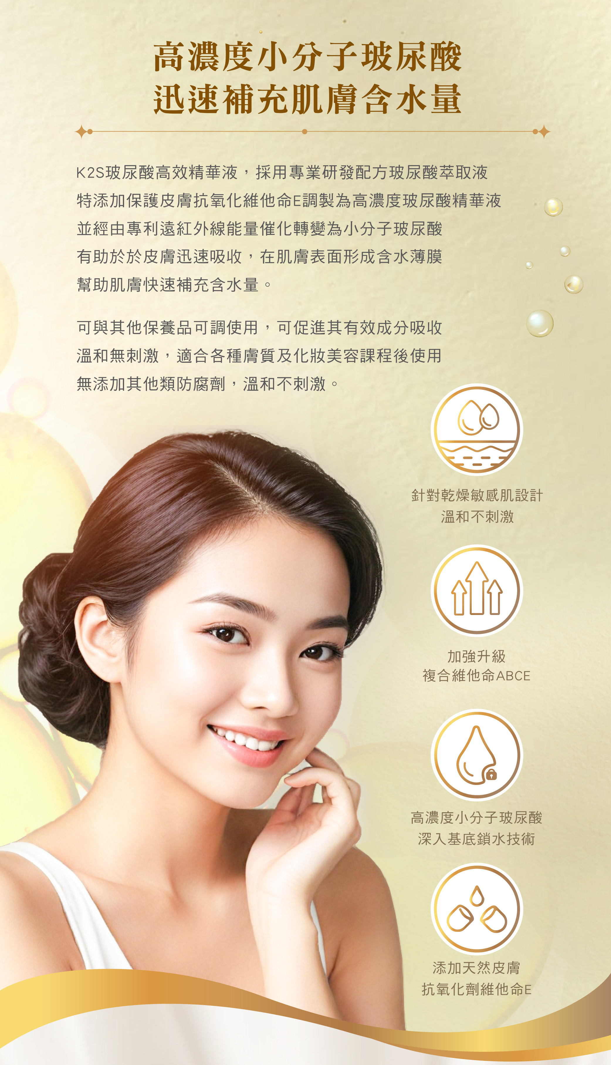 高濃度小分子玻尿酸 迅速補充肌膚含水量