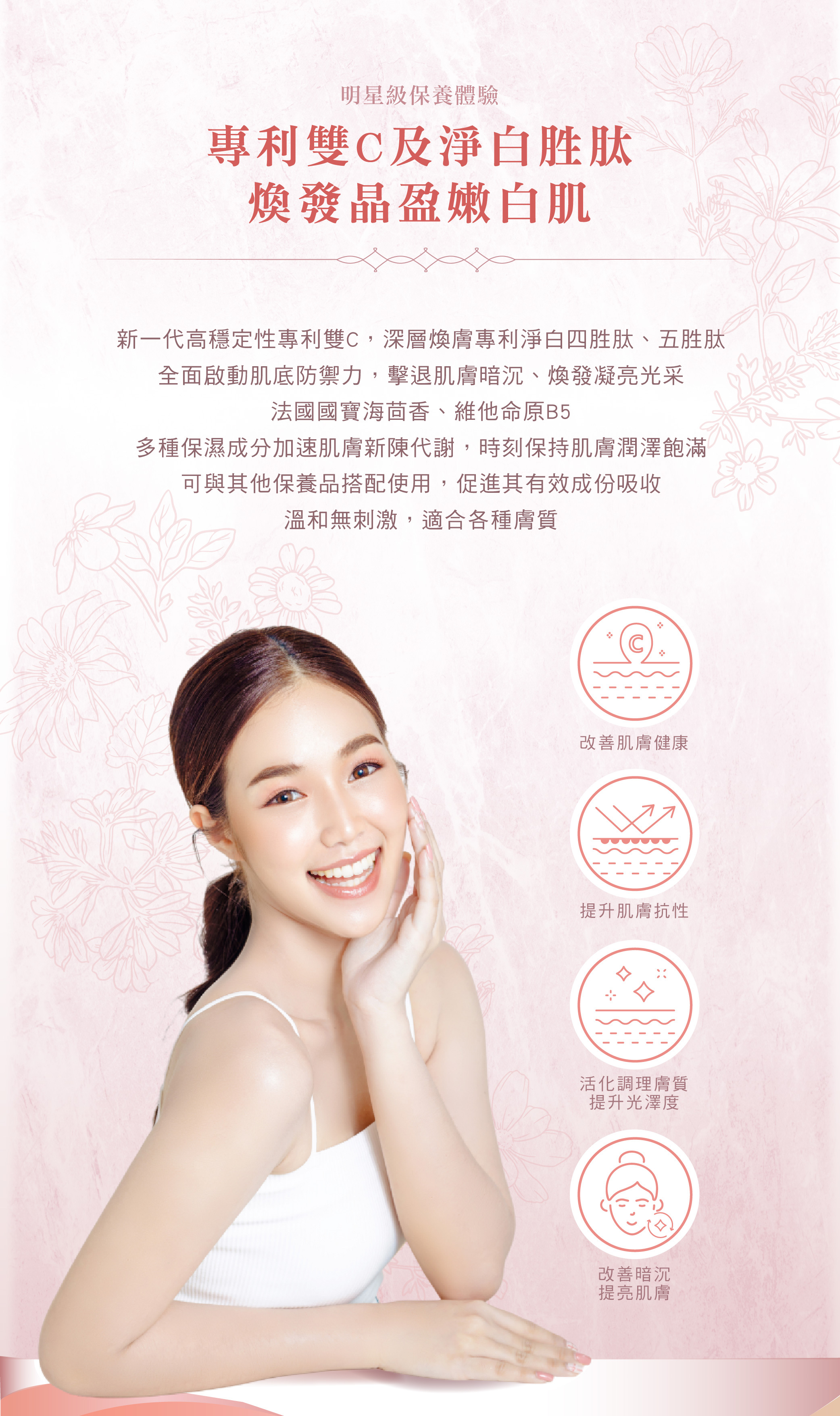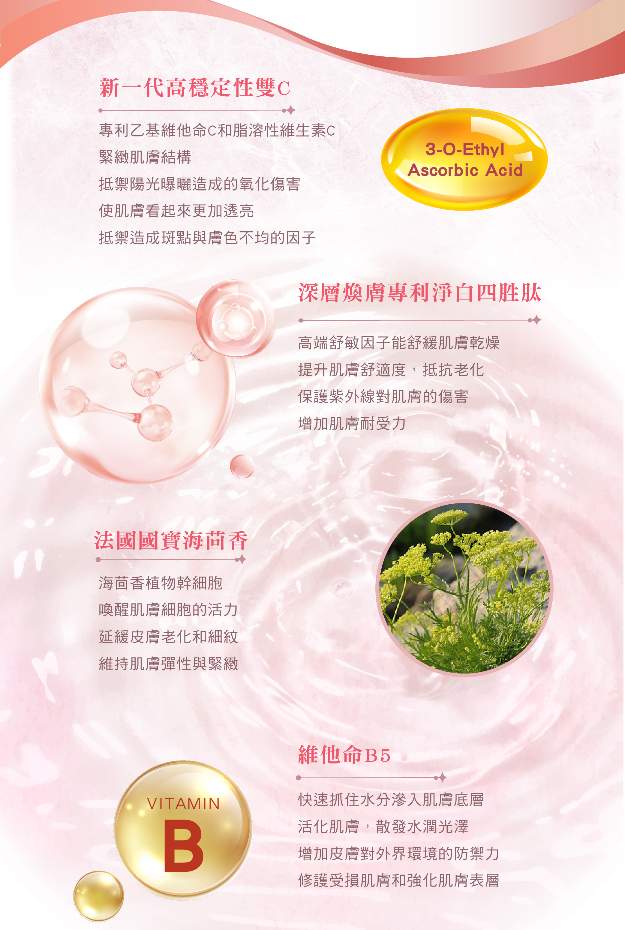 溫和調理膚況,使膚色看起來更勻亮、透出自然光澤。